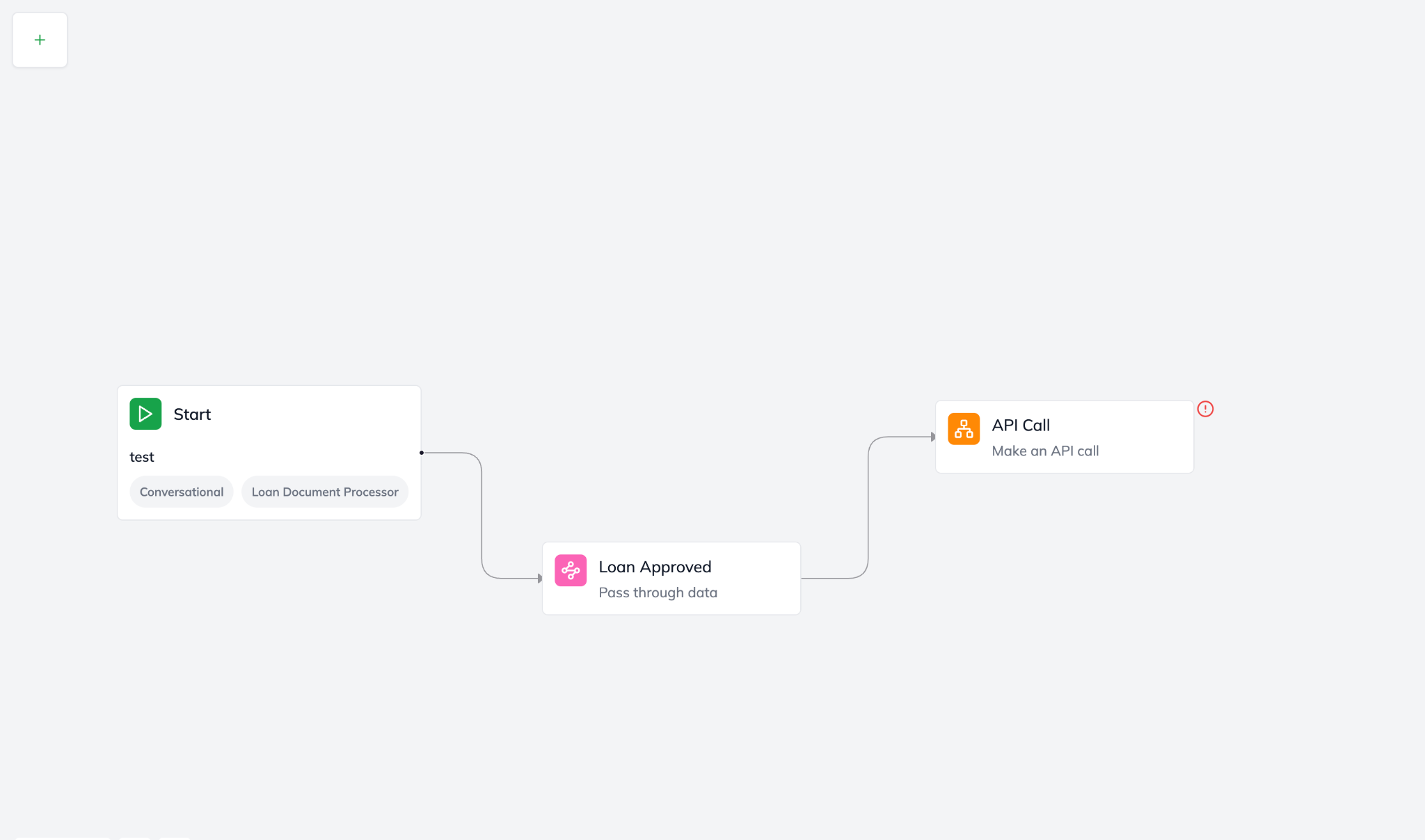 Locate the Skill: Drag and drop the API Call Skill onto your Workflow Builder canvas. Place it in your workflow right after the skill that confirms the loan approval and gathers the client's final details (e.g., after an "Approval Skill" or "Data Extraction Skill").