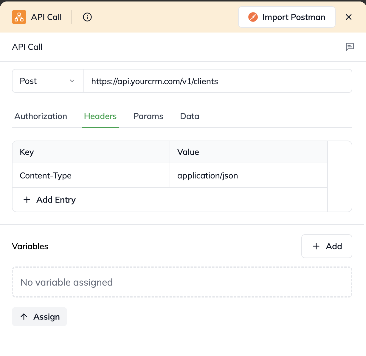 Set the "Method" (What Action to Perform): You're sending new data to create a client, so you'll use a POST method.
