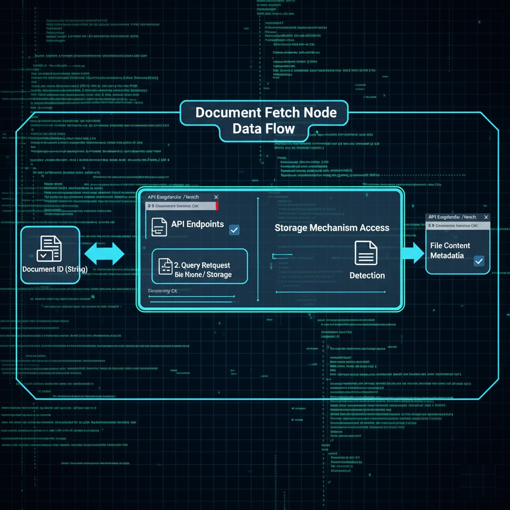 The Document Fetch Node retrieves one or more documents previously uploaded in the same conversation or saved to persistent storage. It enforces strict access control.